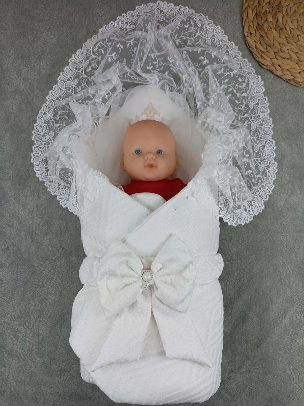 Yenidoğan Grand Lüks Kelebek Ağır Güpür İşlemeli Şapkalı Bebek Battaniyesi Kundak