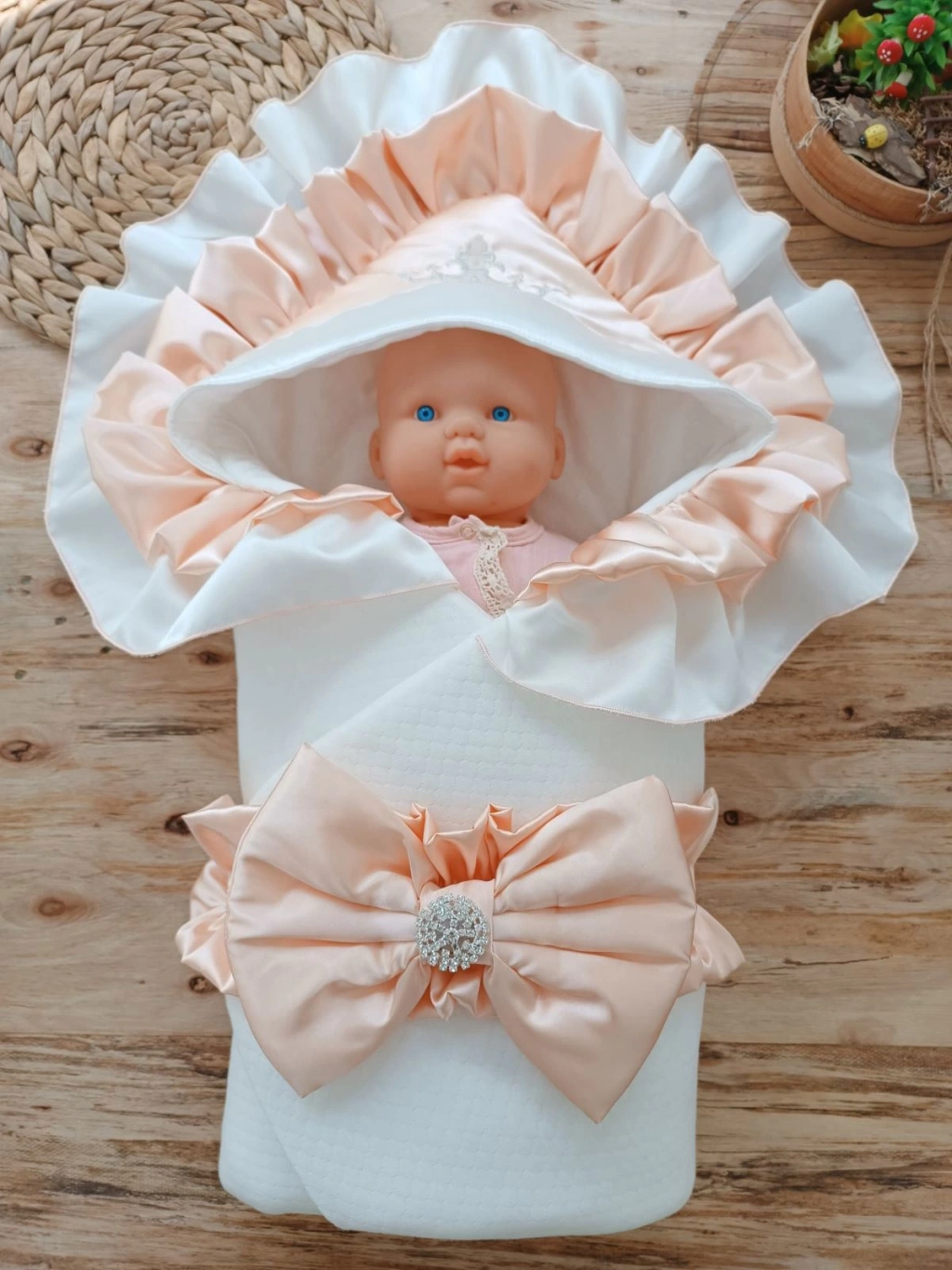 Yenidoğan Grand Lüks Kelebek Ağır Güpür İşlemeli Şapkalı Bebek Battaniyesi Kundak