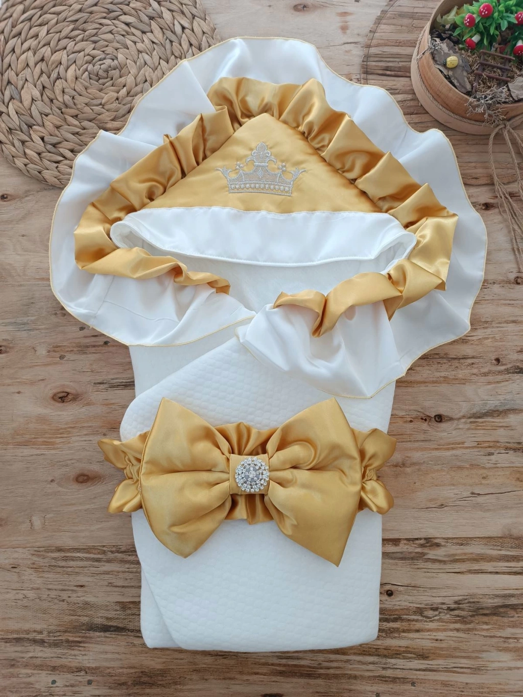 Yenidoğan Mehtap Lüks Kelebek Taç Nakışlı Bebek Battaniyesi Kundak