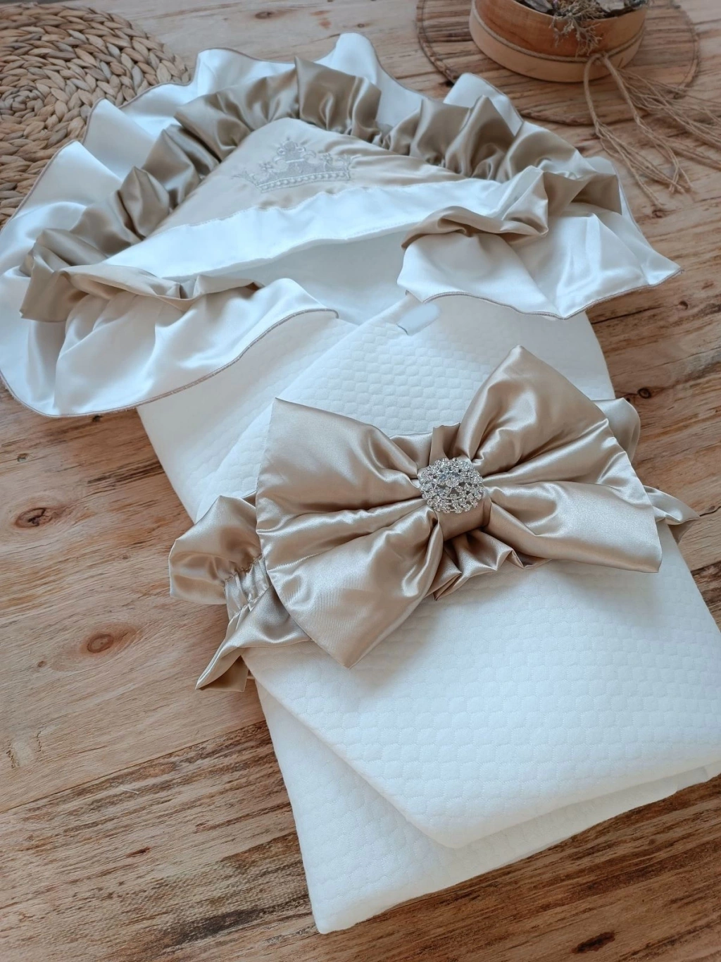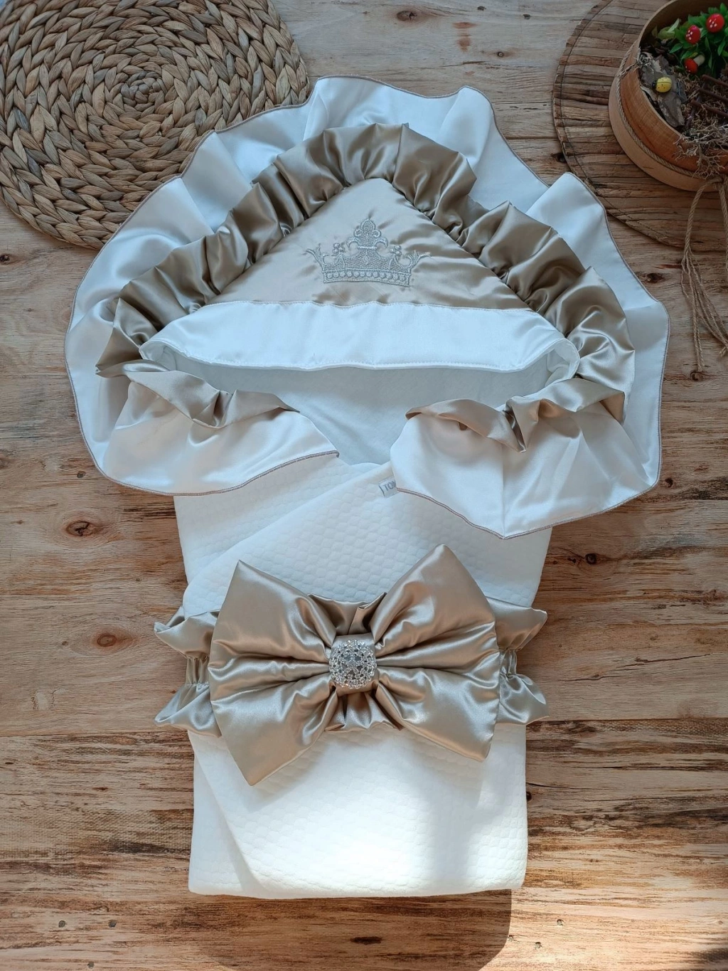 Yenidoğan Grand Lüks Kelebek Ağır Güpür İşlemeli Şapkalı Bebek Battaniyesi Kundak