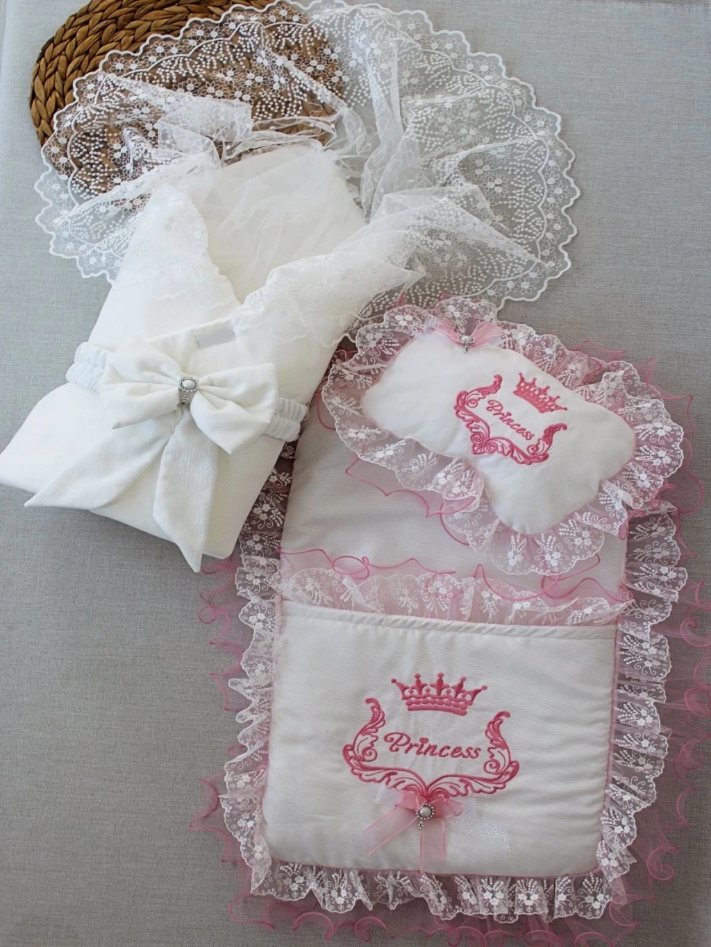 Yenidoğan Nil Taç Nakışlı Kundaklı Trilüks 3lü Alt Açma Seti