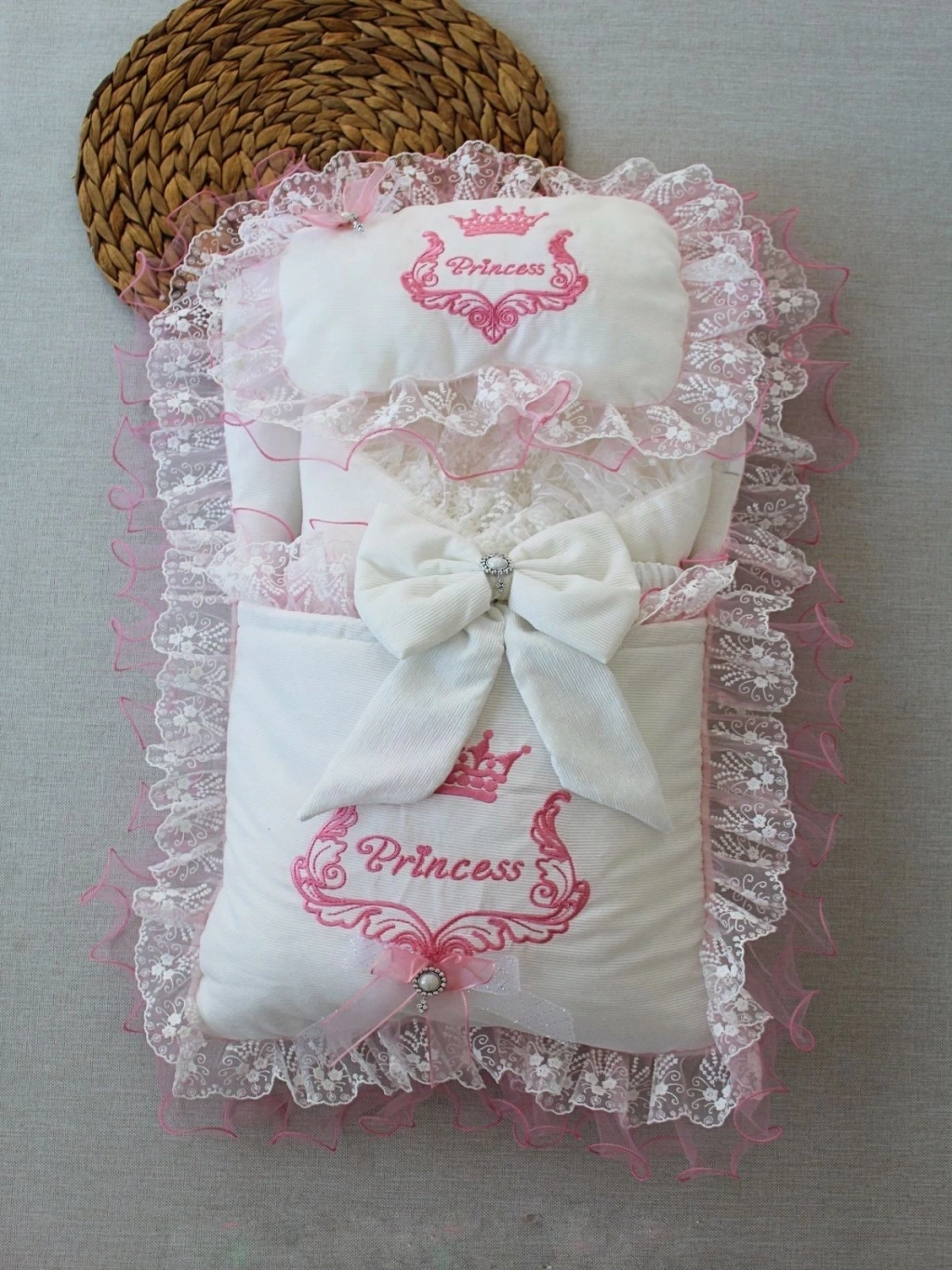 Yenidoğan Piramit Desenli Güpür İşlemeli Bebek Battaniyesi Kundak