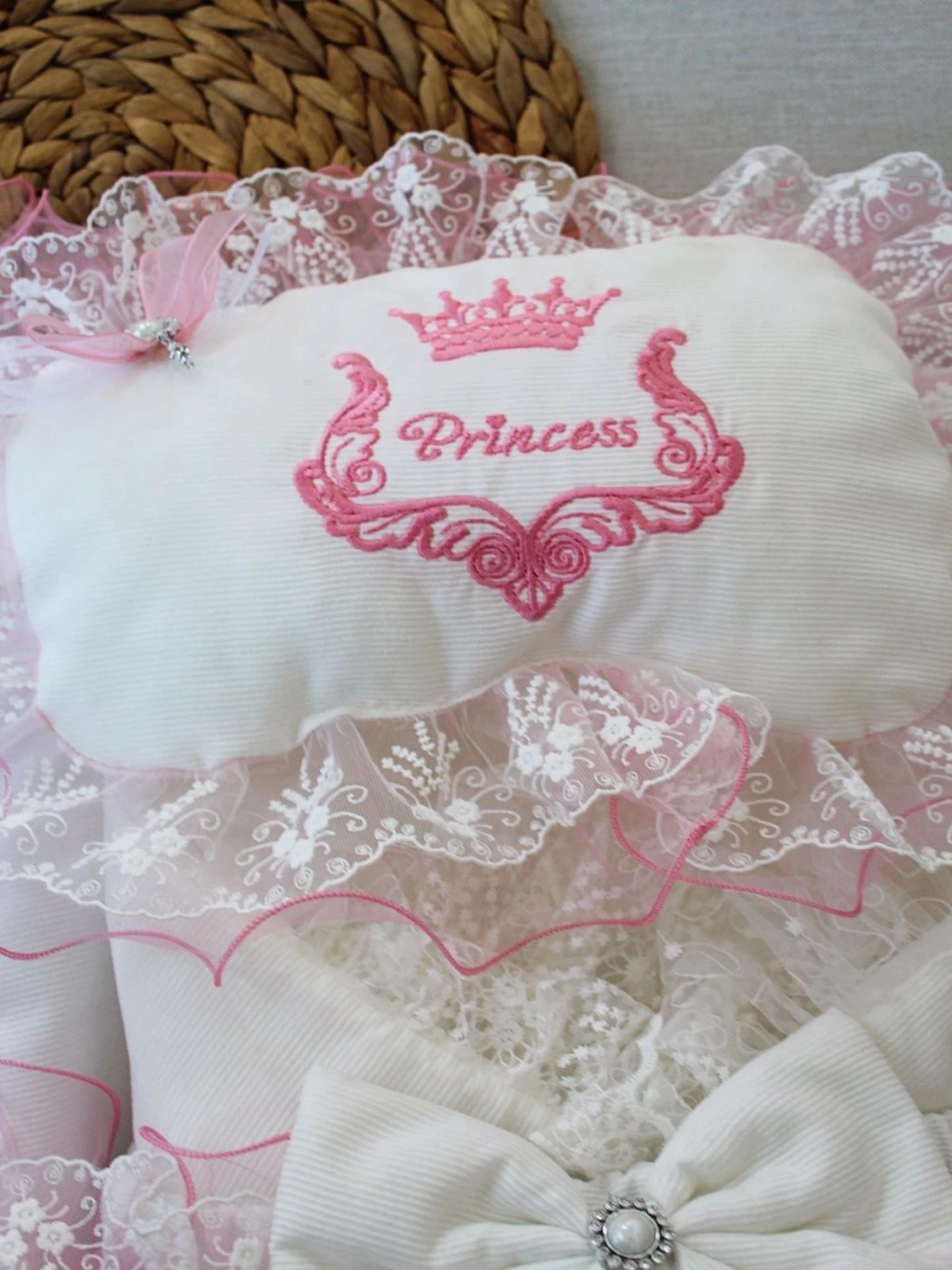 Yenidoğan Grand Lüks Kelebek Ağır Güpür İşlemeli Şapkalı Bebek Battaniyesi Kundak
