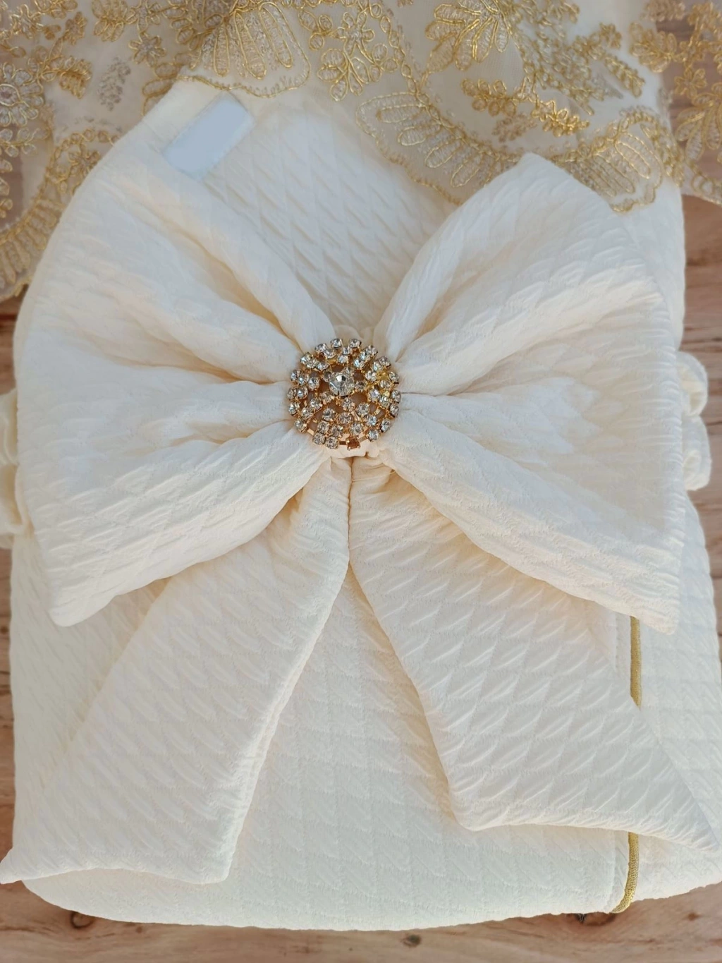 Yenidoğan Piramitland Taşlı Gold Güpür İşleme Bebek Battaniyesi Kundak