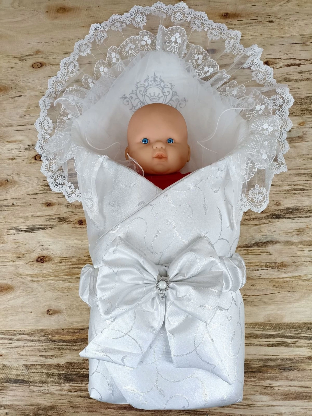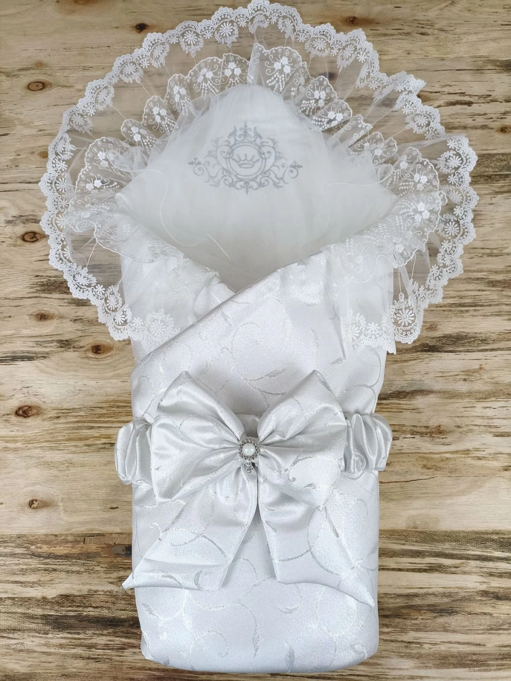 Yenidoğan Pırıltı Taç Nakışlı İnci Delüks Kundak Bebek Battaniyesi