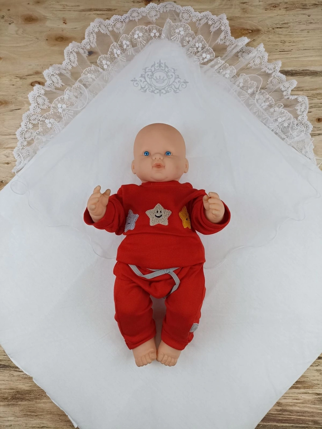 Yenidoğan Piramit Desenli Güpür İşlemeli Bebek Battaniyesi Kundak