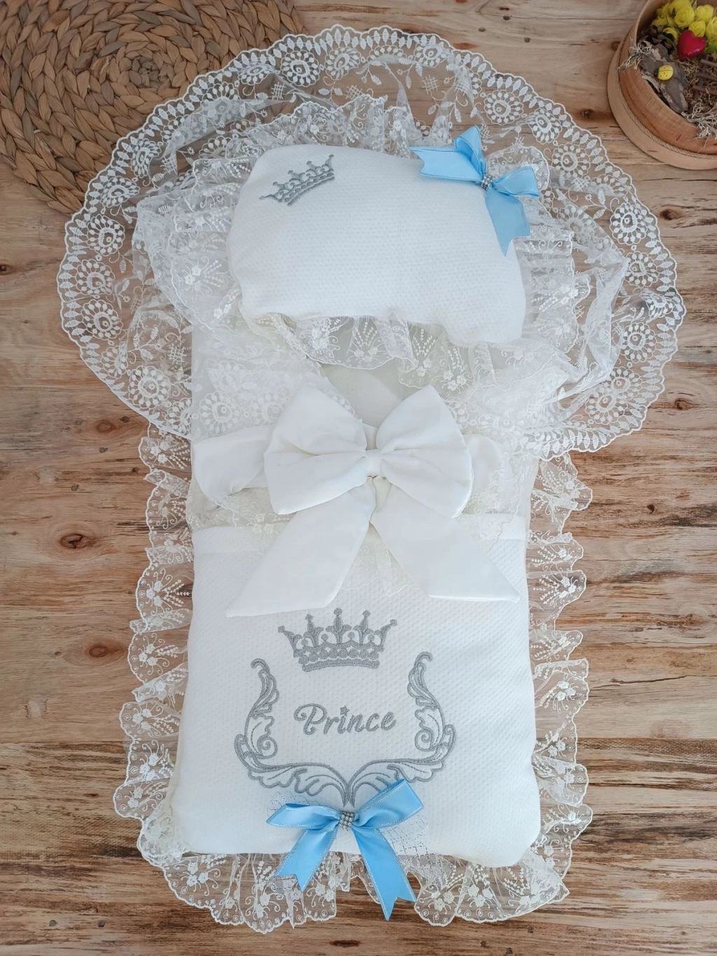Yenidoğan Piramit Desenli Güpür İşlemeli Bebek Battaniyesi Kundak