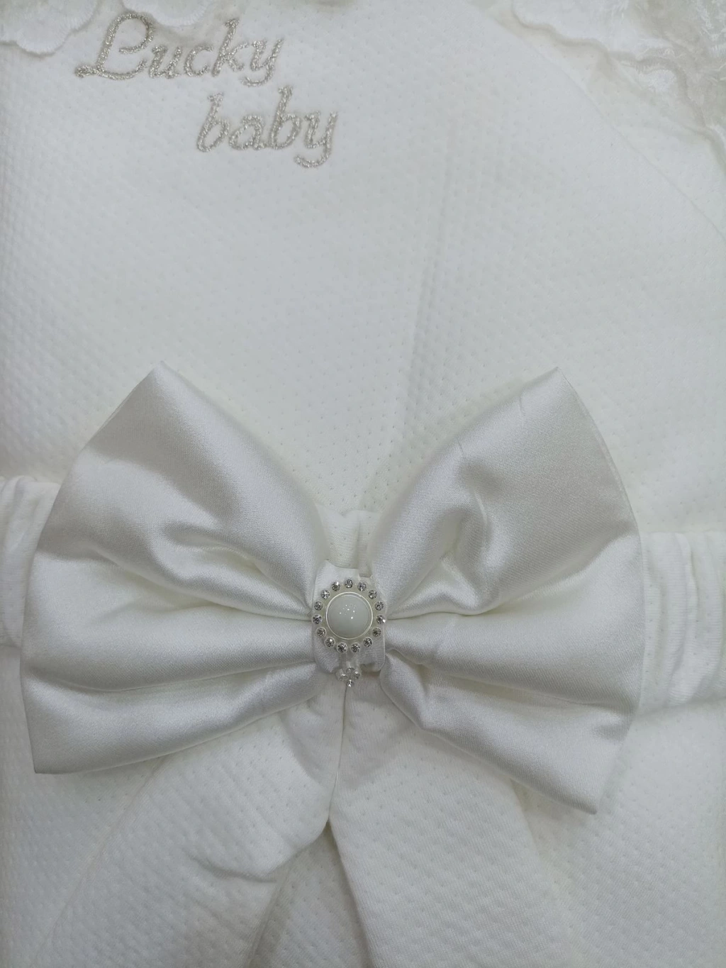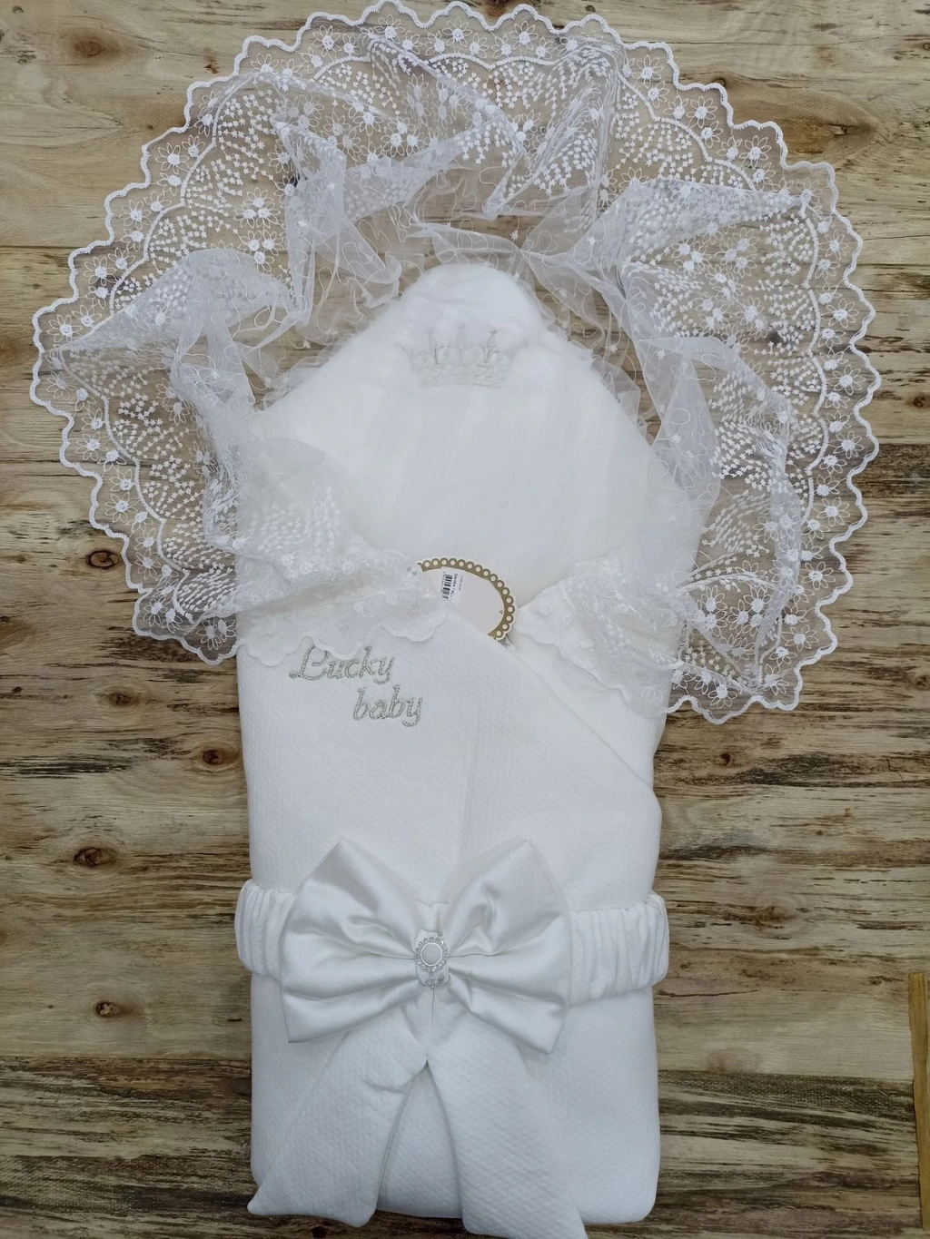 Yenidoğan Sahra Taç Lucky Baby Nakışlı Kumru Kundak Bebek Battaniyesi