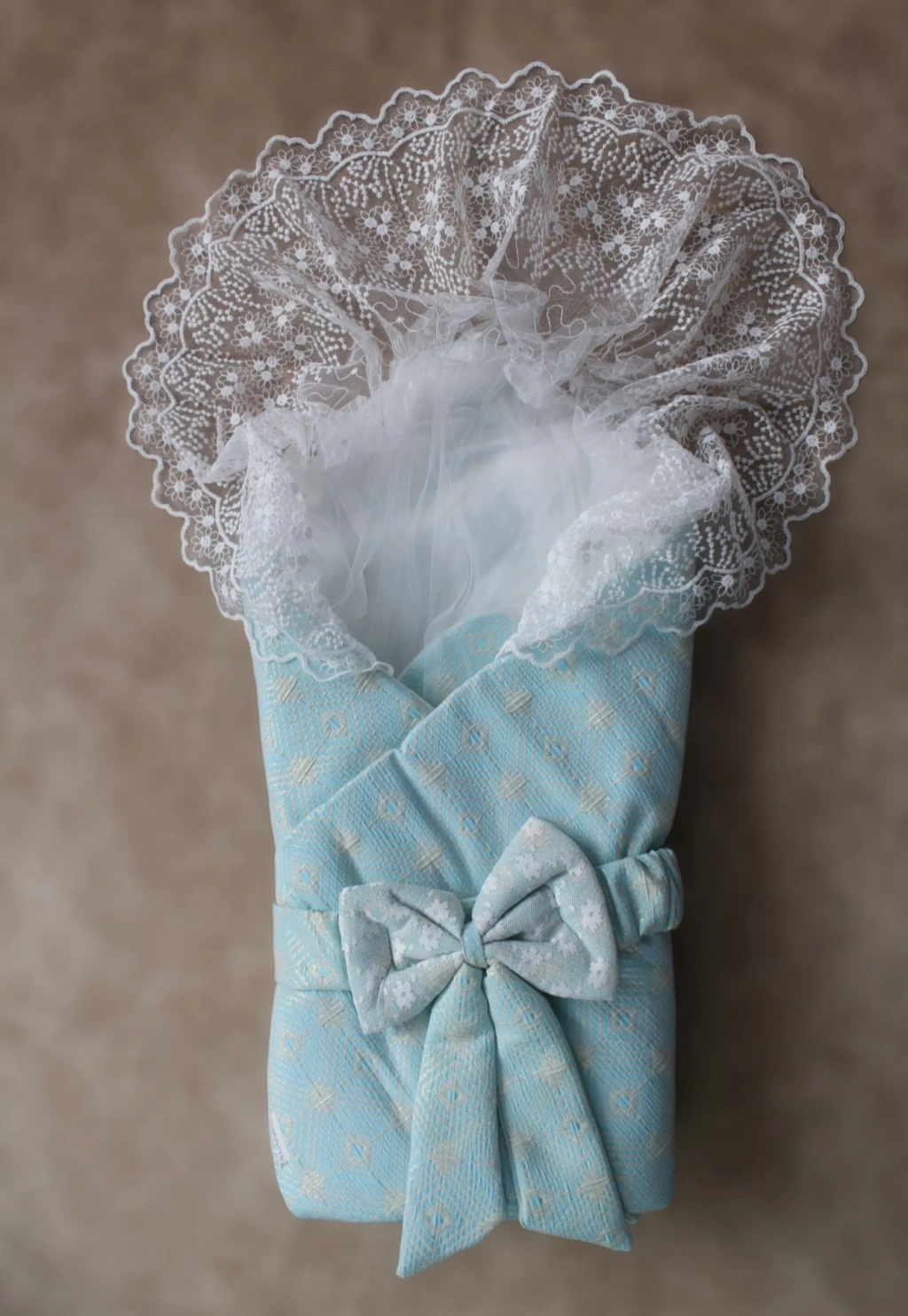 Yenidoğan Piramit Desenli Güpür İşlemeli Bebek Battaniyesi Kundak