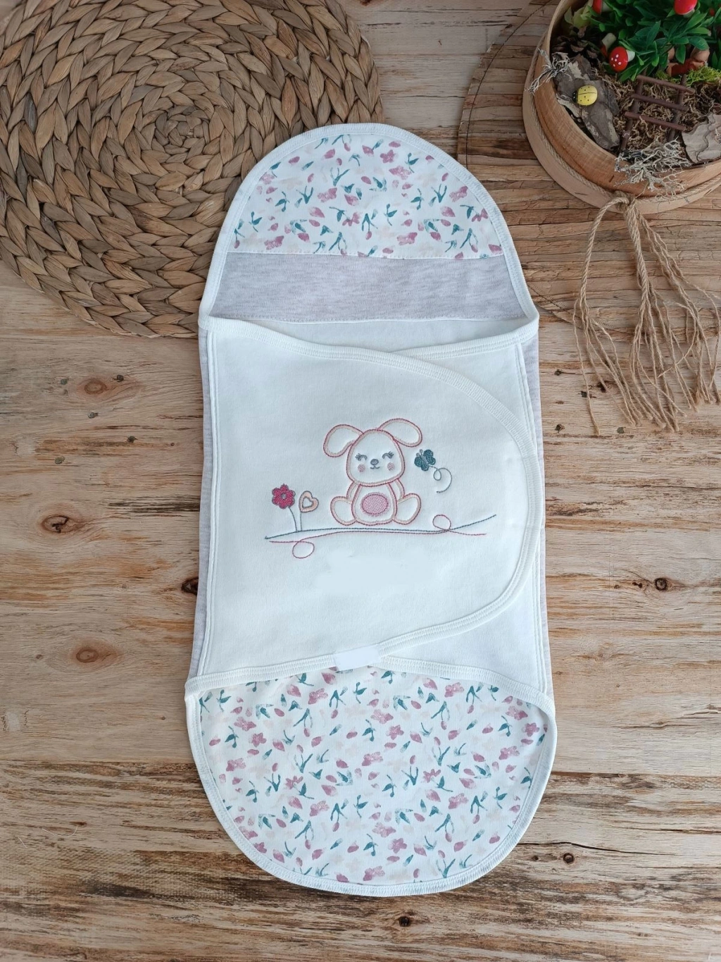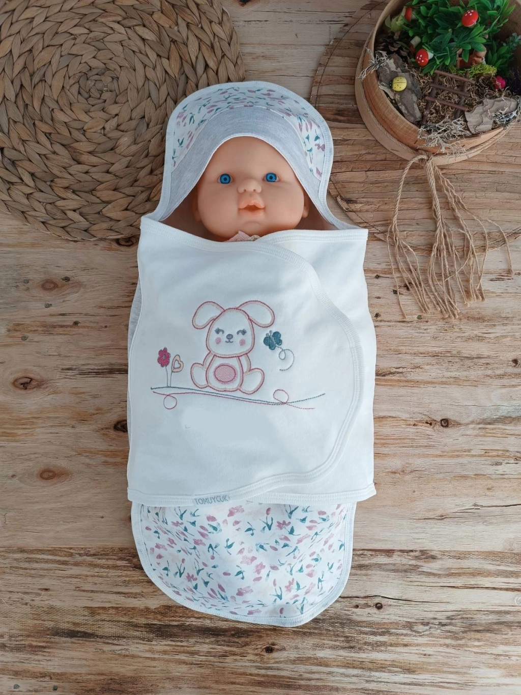 Yenidoğan Tavşan Show Nakışlı Çıt Çıt Kapamalı Bebek Kundak