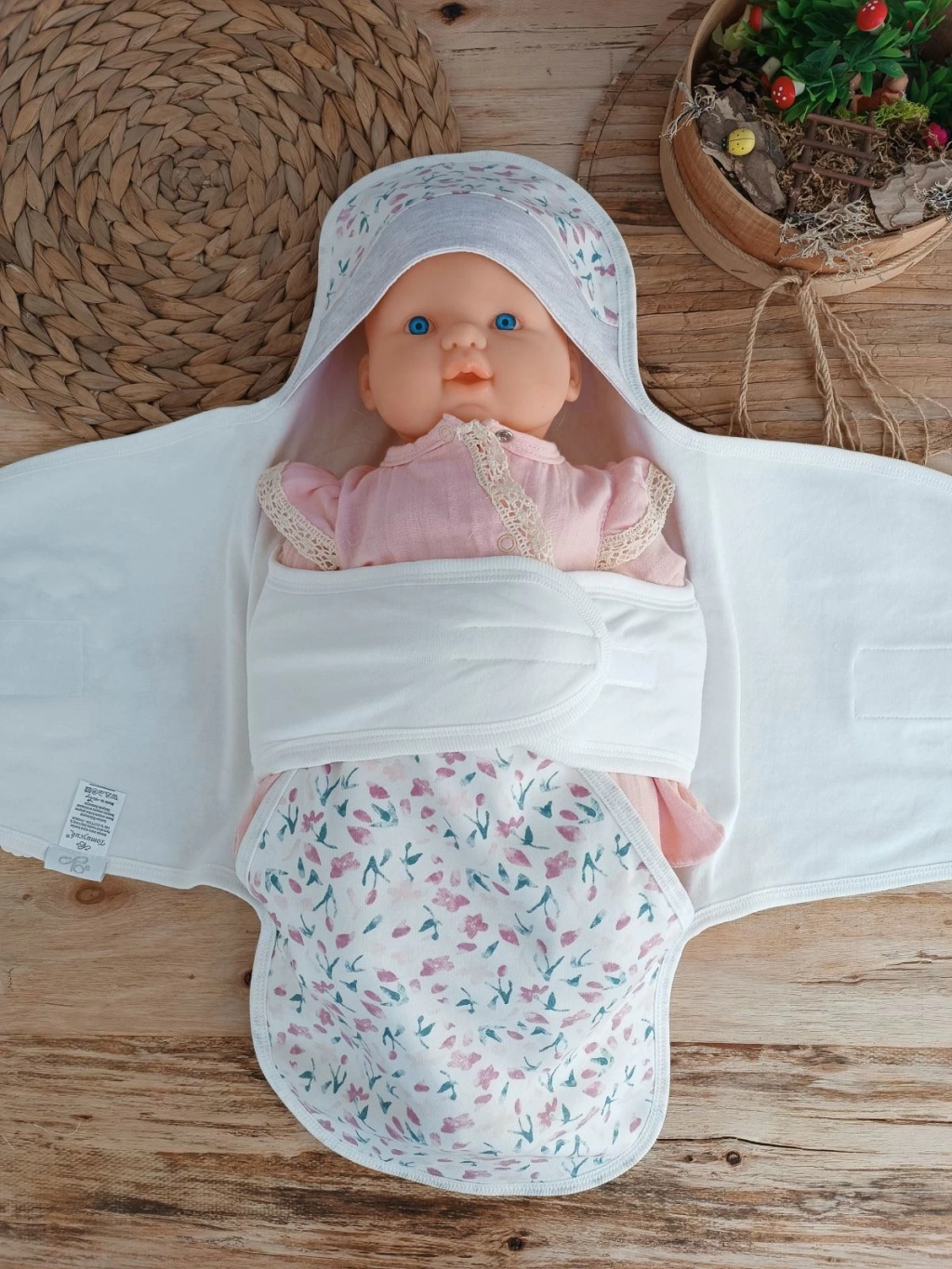 Yenidoğan Kulaklı Şapkalı Açılır Kucaklı Cırt Kapamalı Bebek Battaniyesi Kundak