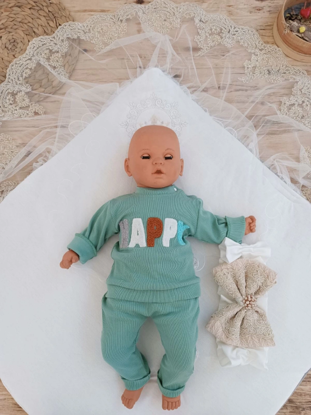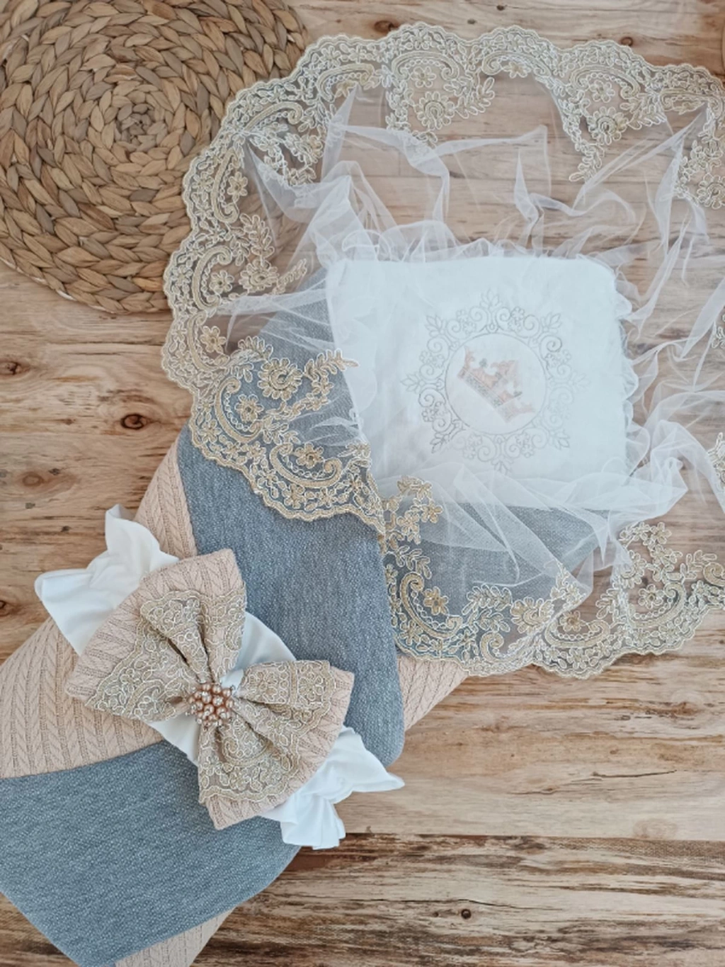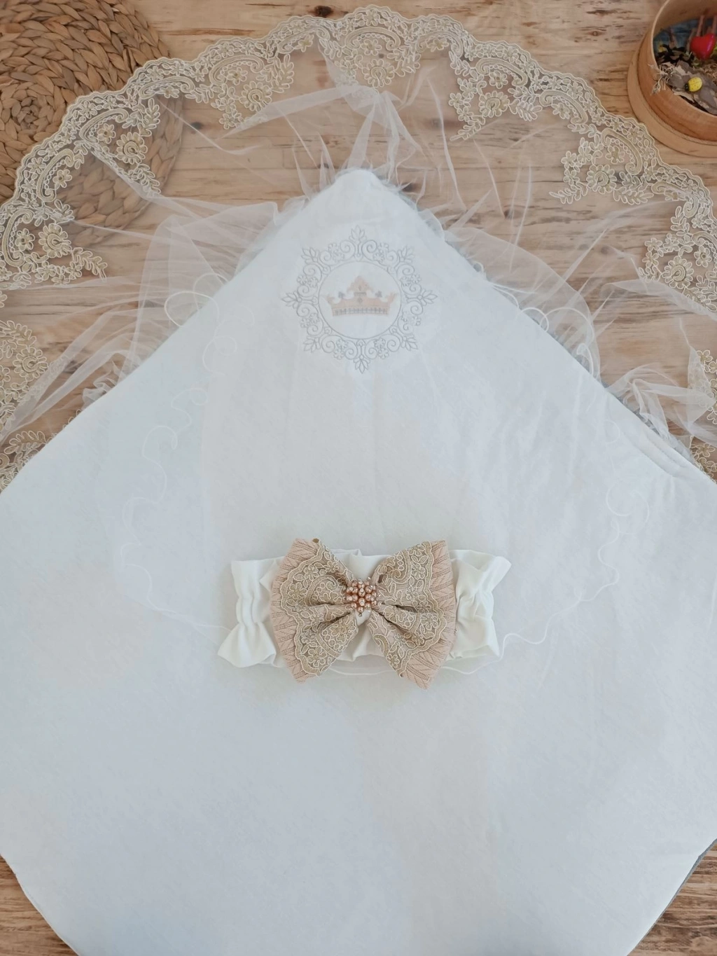 Yenidoğan Grand Lüks Kelebek Ağır Güpür İşlemeli Şapkalı Bebek Battaniyesi Kundak