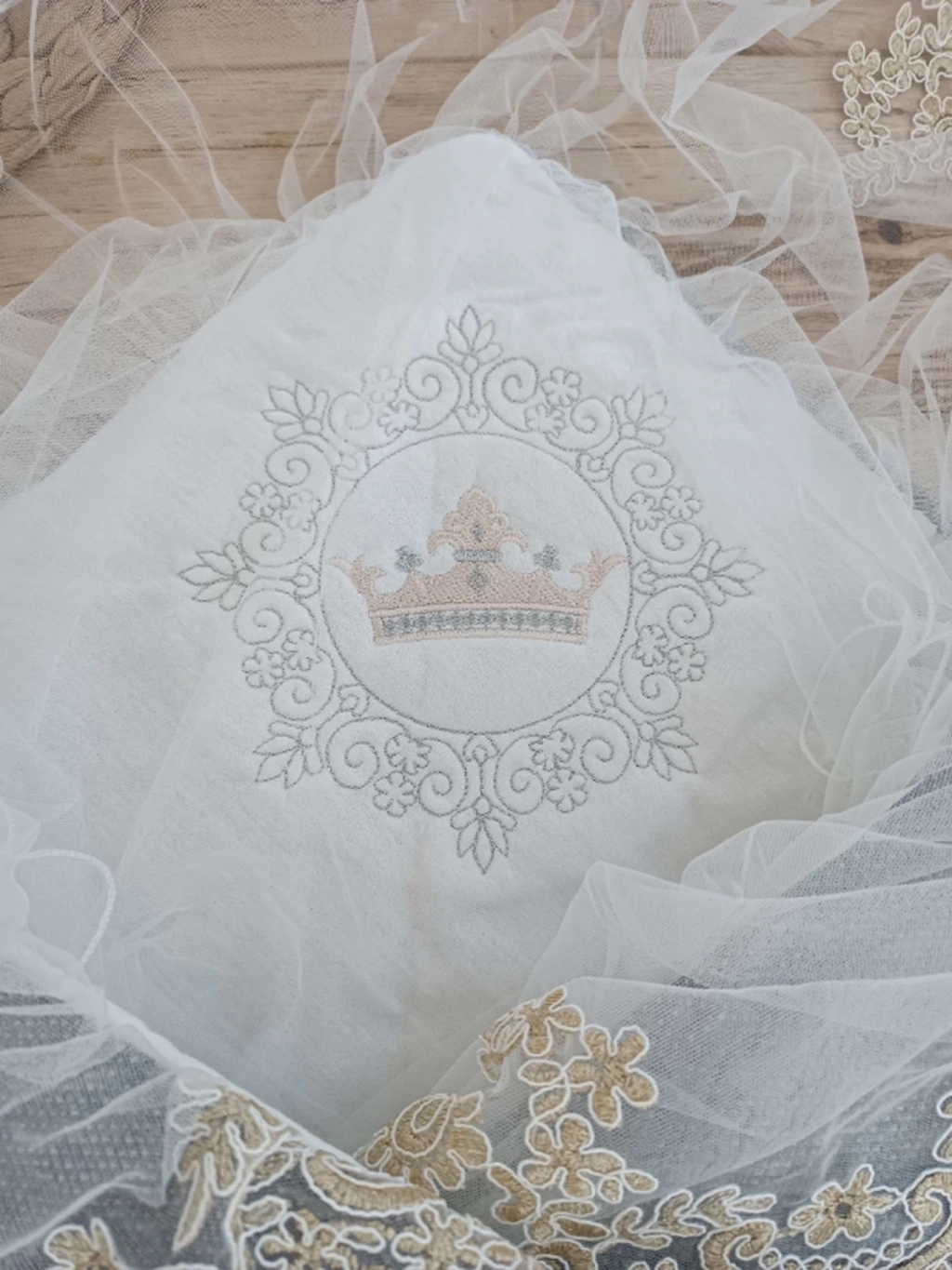 Yenidoğan Teri Cotton Taç Nakışlı Prizma Taş Kundak Bebek Battaniyesi