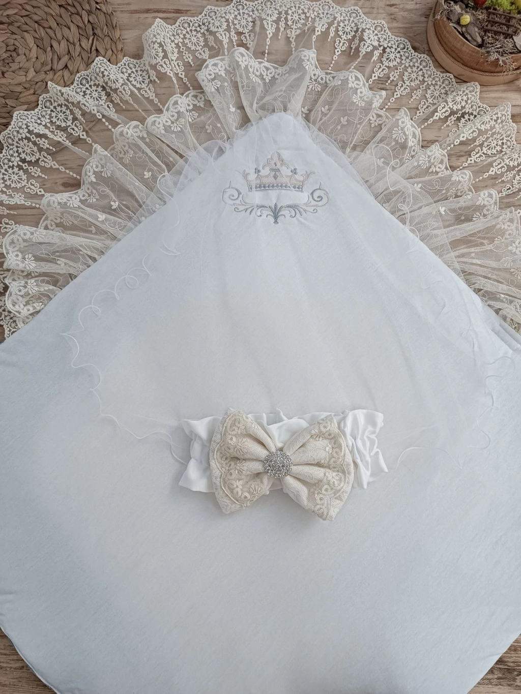 Yenidoğan Teri Cotton Taç Nakışlı Prizma Taş Kundak Bebek Battaniyesi