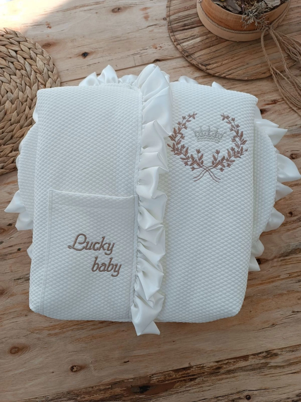 Yenidoğan Ultralüks Fermuarlı Ve Cepli Lucky Baby Nakışlı Bebek Battaniyesi Kundak