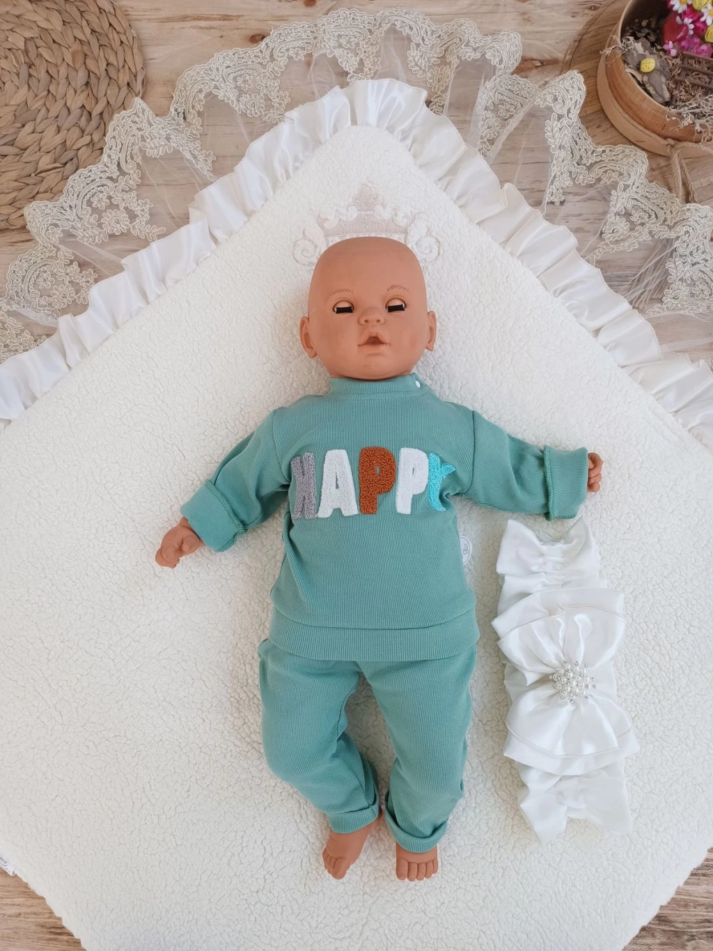 Yenidoğan Kulaklı Şapkalı Düğme Detaylı Fiyonklu Bebek Battaniyesi Kundak