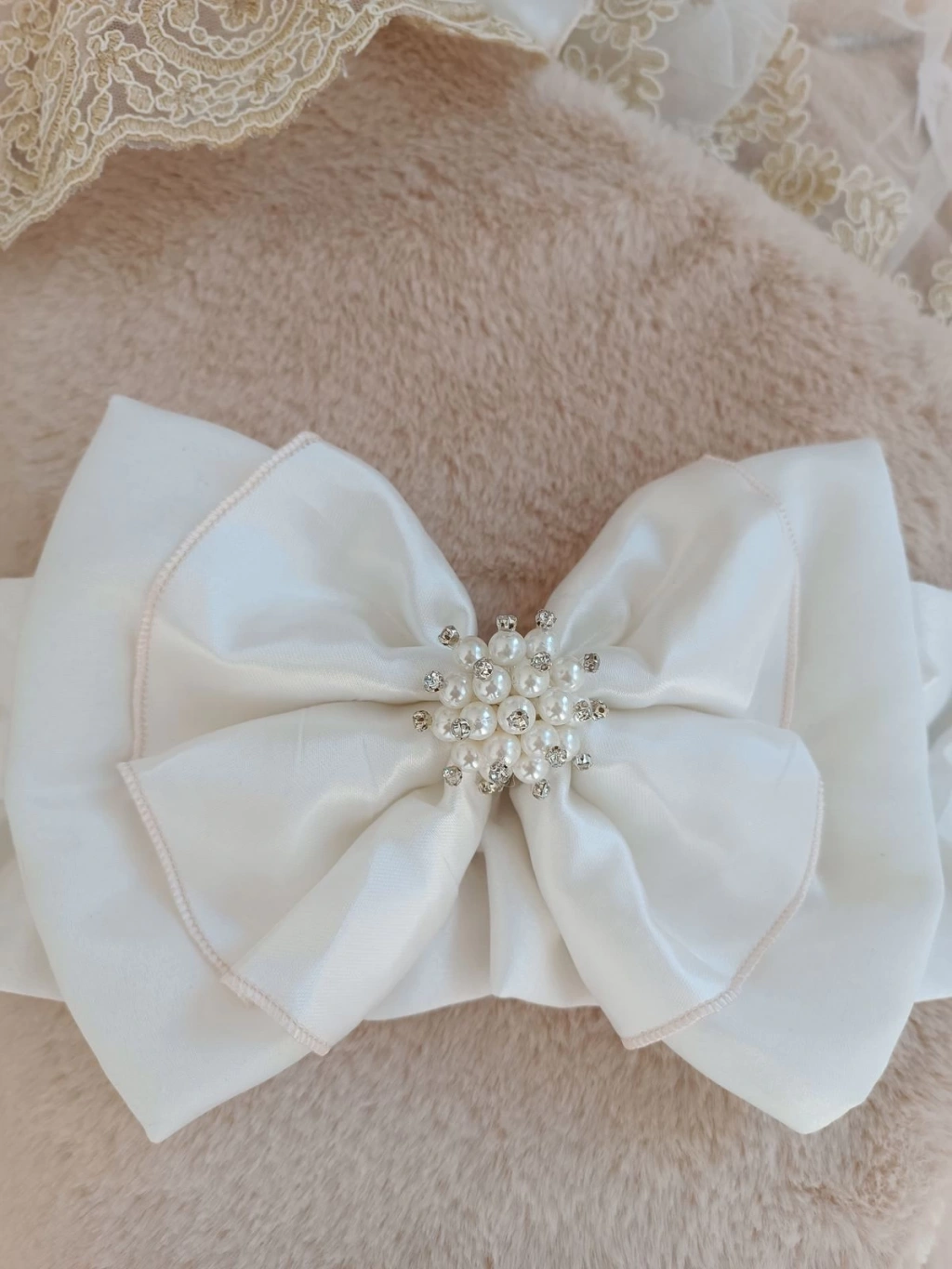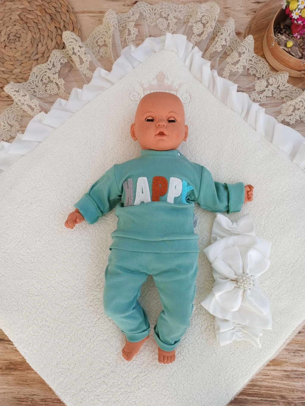 Yenidoğan Wool Yün Kumaş Taç Nakışlı Güpür Duvaklı Fiyonk Prizma Taş Unisex Kundak Bebek Battaniyesi
