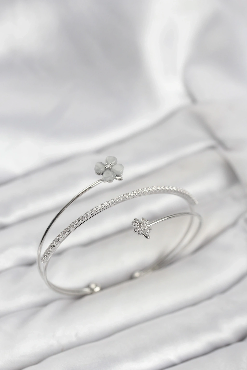 Yonca Çiçek Model Pirinç Gümüş Renk Kadın Bileklik